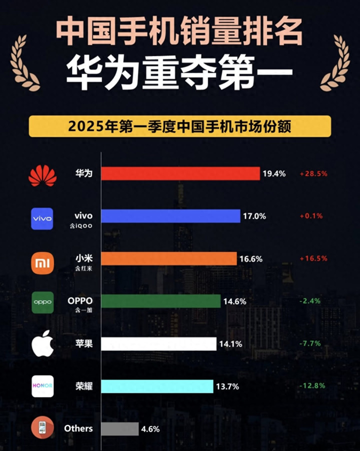 原本华为、苹果领跑,vivo、OPPO、小米、荣耀贴身竞争的格局,将彻底转变为华为+荣耀联手抗衡苹果,小米、OPPO、vivo争夺剩余市场的全新格局。华为和荣耀凭借鸿蒙生态的协同效应,将在品牌影响力、产品体验、生态布局上形成优势,成为国内市场对抗苹果的核心力量;而小米、OPPO、vivo则会在第二梯队展开更为激烈的竞争,谁能率先实现技术突破和生态完善,谁就能占据更有利的市场地位,品牌间的分化将进一步加剧。